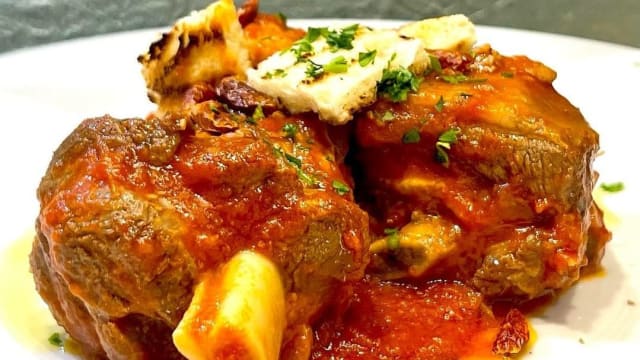 Pomodoro, mozzarella, sugo di castrato e pecorino