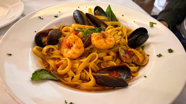 Tagliatelle de Salmon, Espinaca y Langostinos