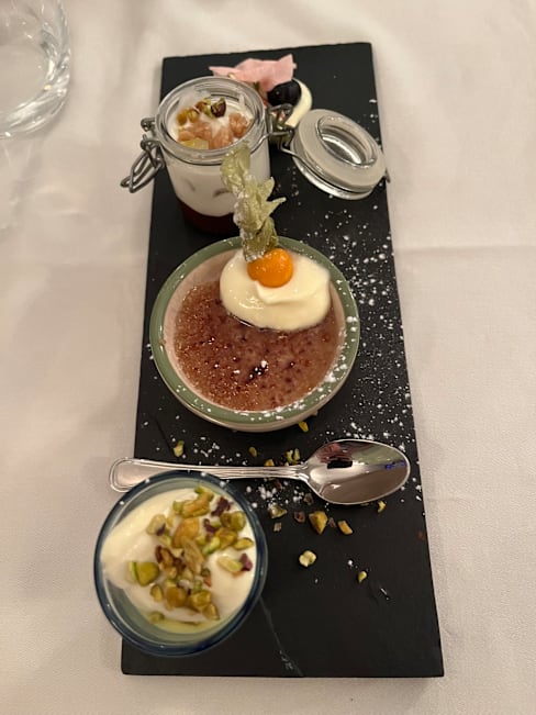10/10Superb food. We had a five course chef designed menu with matching wines. It was excellent, from the rather clever tomato “crème brûlée” with pecorino cream, to the six desert tasting plate with matching desert wine. Awesome throughout! The homemade limoncello was superb, but they also made a liquorish version, which I had to buy, it was amazing. The whole experience was stunning, and fantastic value for money.