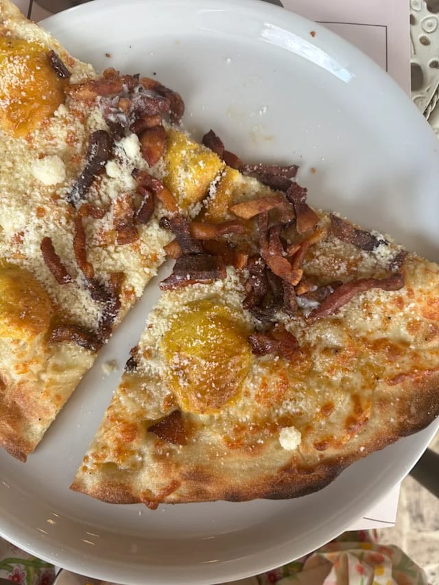 Mozzarella, uovo, guanciale, pecorino, pepe