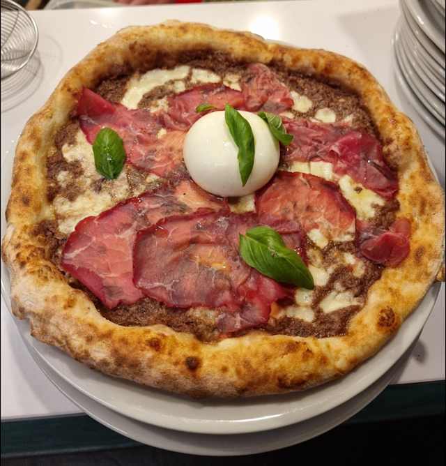 - Pomodoro san marzano, fior di latte, speck e brie