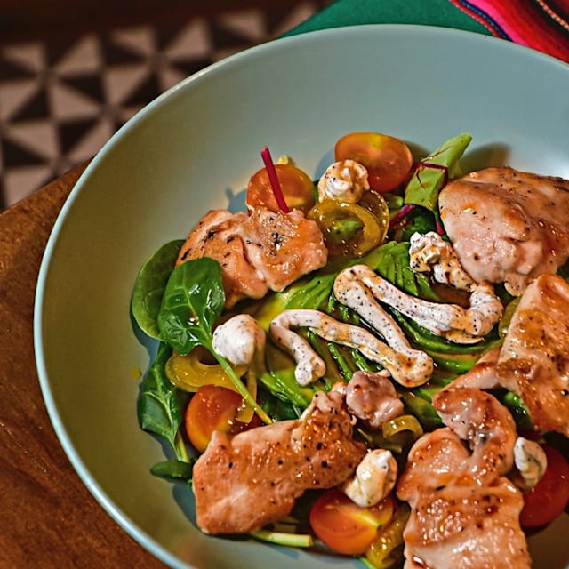 Quinoa, aderezo criollo, mix de hongos, aceite de trufa