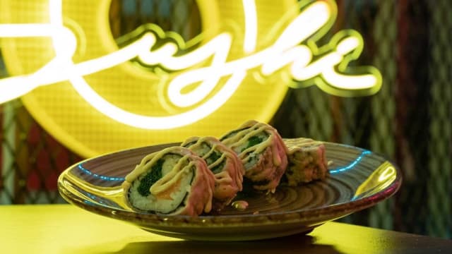 9.5/10Had a really nice dinner at AxoSushi. The staff were super friendly and attentive, which made the whole experience feel relaxed and welcoming. The food was great – fresh, tasty, and with lots of good options to share. It’s the kind of place that works well whether you’re going with a friend or a small group. The atmosphere was lively but not too loud. The interior is modern – maybe not totally my style – but still nicely done. Overall, a very enjoyable evening. Would happily go back.