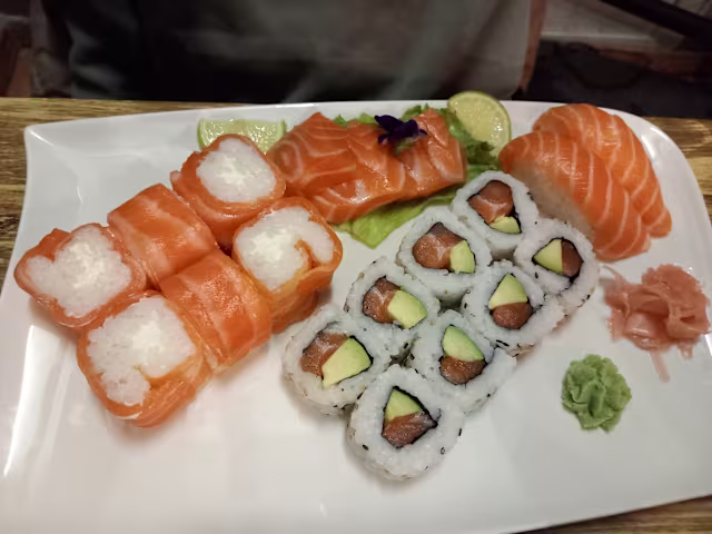 - 8 p california saumon avocat 6 p maki salmon roll 3 p sashimi saumon