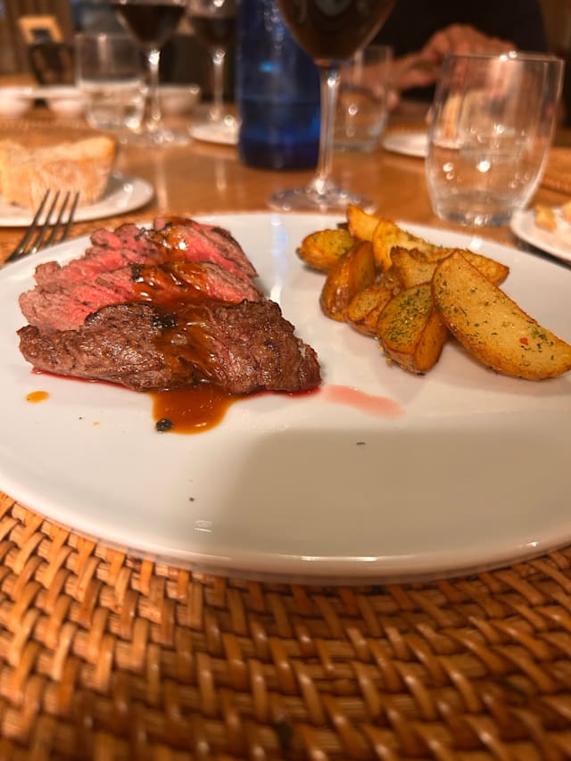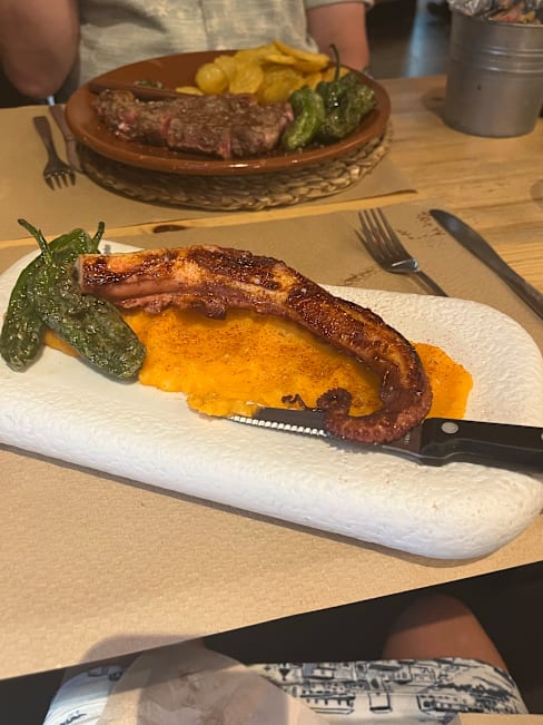 4/10We had high expectations, but unfortunately, the experience didn’t meet them. We were seated at a distant corner table and didn’t feel very welcome. I requested a table further inside, but didn’t get a clear response. Bread and olive oil were served without us ordering, and we were charged €9 for 3 person , which felt excessive. The tenderloin was undercooked even though we asked for medium-well, and the plate was quite bloody — not to our taste. Overall, we left disappointed... expected a better experience.