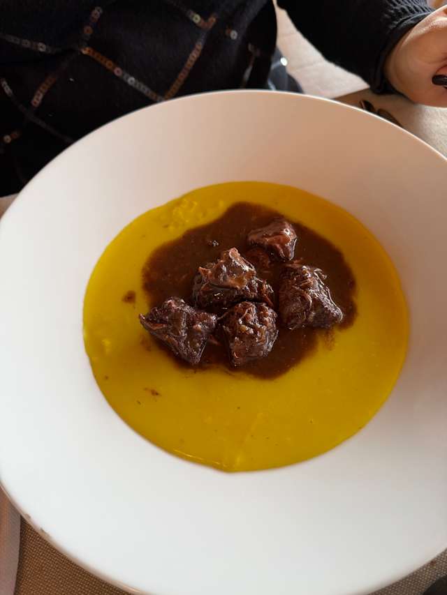 - Stracotto di manzo al Merlot su crema di patate al rosmarino