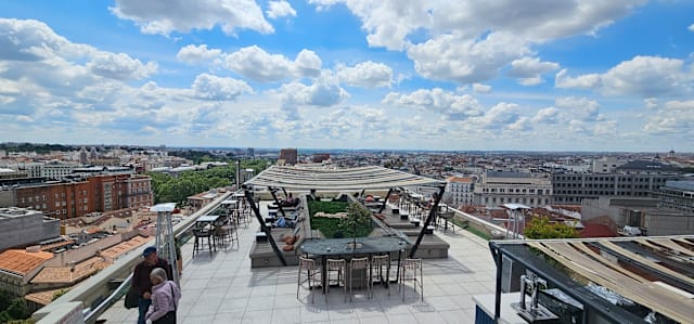3.5/10I expected to have an open air roof top experience we were made to sit inside away from the view. Our waitress was not friendly but not mean. My hamburger was barely cooked but never asked how was my food, when asked for our check it took 10 minutes to get