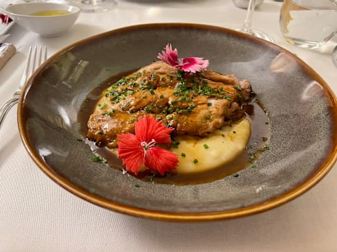 8/10Lovely restaurant with a quiet ambiance. Service staff were friendly and knowledgeable. All the food was excellent except the main course for which we selected the pork ribs. Portion was small and the mashed potatoes were quite soupy. Perhaps that’s a difference between how we serve them in Canada.