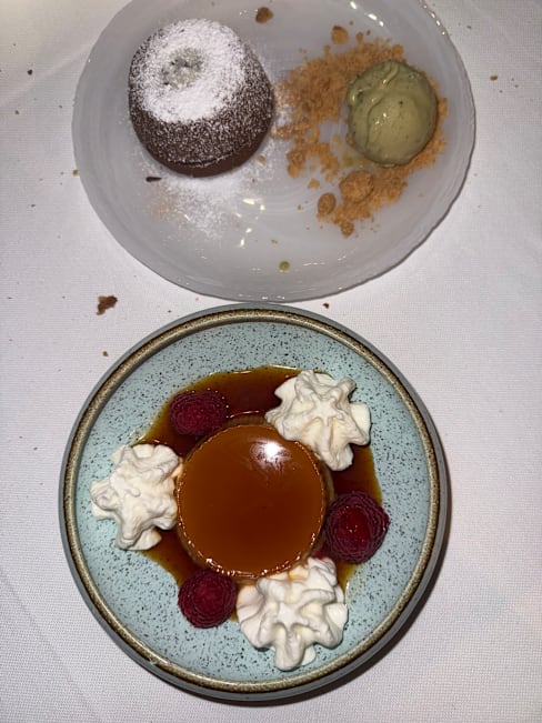 9/10The food was excellent all the preparations that we tried and the drinks were really tasty and well cooked and prepared. The reception is super nice and all seems very excellent attention until the one at the table which, for me, can be improved. Our waitress seemed not to be in a good mood and in a hurry. When we asked for the drinks and the entrance she wanted for us to ask for the main dishes and we said we weren't ready yet which it seems to annoy her, after a couple of minutes that we were looking the menu for the main dish, she came and ask my menu and that she will leave us only one menu, which seems something very uncomfortable as the table was big and we couldn't share one menu with my husband, so I have to move the chair and change the sitting place in order to be able to read only one menu between us. When we ask for a wine recommendation (hopefully based on what we were eating), the answer was "this is the one that people buy more"...