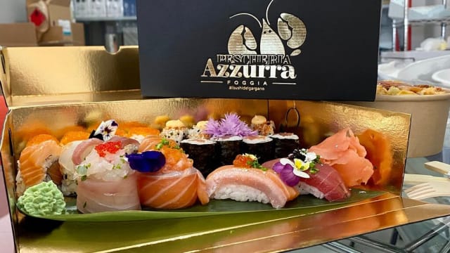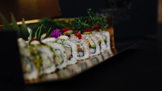 Sushi jo - pallina di riso avvolto da filetto di pescato e topping dello chef (2 pezzi)