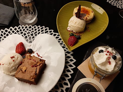 10/10Great food, lovely service from the staff. Live entertainment was very good too, all unexpected. Plans were cancelled due to a thunderstorm so we went down to the hotel restaurant instead and had a lovely meal of tapas and fresh fish from the local market. Very well executed entrées, main and dessert. Our fussy child went for spaghetti and she thoroughly enjoyed it. Chocolate brownie and ice cream dessert as well as the cheesecake, we’re yummy!