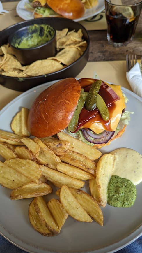 7.5/10The main dish (the burgers) are excellent, the flavours are good and not too much. The nachos, are just some store bought bag of chips unfortunately and very disappointing, They put some effort in the cocktails but forgot some Ingredients, Would visit again for just a burger!