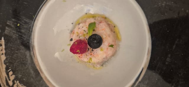 Bottoni ripieni al gambero rosso con burrata al lime e gambero crudo riserva rossa di "mazara del vallo"
