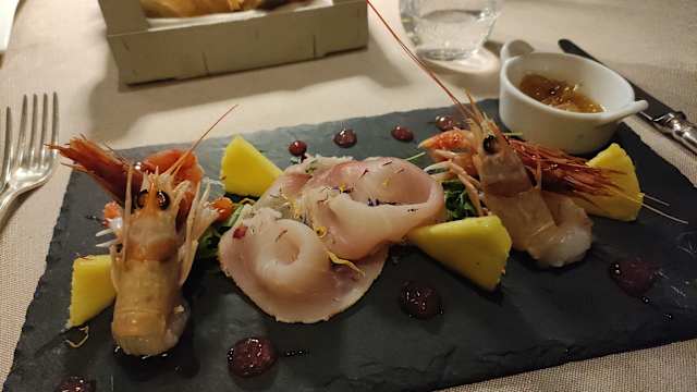 - su carpaccio di Angus e cruditè di asparagi bianchi di Bassano DOP