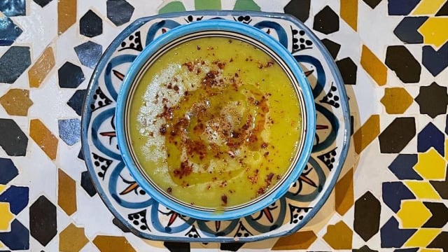 - Marokkaanse soep met kalfsvlees en kruiden, geserveerd met Marokkaans brood
