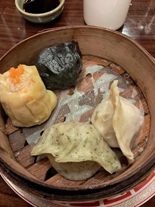 - Ravioli di gambero al nero di seppia, ravioli di malale, ravioli di vitello, xiao mal