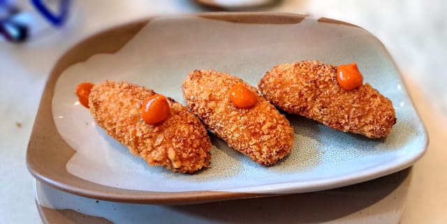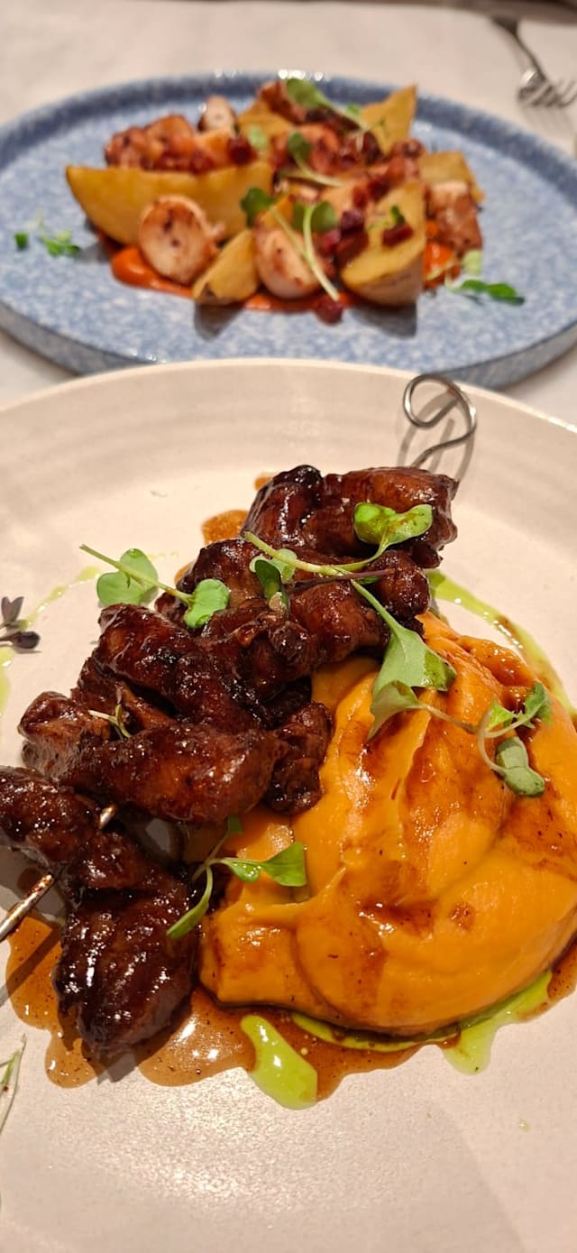 9/10The warm welcome and knowledgeable maître d' set high expectations, and the stunning atmosphere didn't disappoint. Service started strong with prompt drinks and helpful menu guidance. The standout stars were the house-made croquetas with slow-cooked meat and innovative bacalao churros—both exceptional and memorable. However, the experience wavered with mains. While the pulpo with oven-baked potato wedges was solid if unremarkable, the solomillo proved a bit disappointing. Despite clearly requesting "al punto" (medium), it arrived distinctly rare, a fundamental service failure that's particularly frustrating when dining out. A shame that kitchen do not honour the notes given by the waiter. The beautiful setting and excellent starters show real potential, but inconsistent execution in the kitchen undermines what could be a stellar experience. Worth visiting for the atmosphere and creative appetizers, but temper expectations for the main courses.