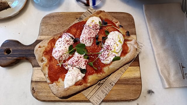 10/10Very nice experience : the restaurant itself is beautifully furnished and the multiple sofa corners are so comfortable. I tried their "Corazon de Burrata" and it is such a refreshing entrée with sweet accents thanks to the strawberries used. The main dish "Pulpo" was the perfect amount to leave you satisfied while keeping it pleasant. And for dessert, the "Tarta de queso" is such a nice final touch with savory accents brought by the grilled cheese chips put on top. A mention to the staff who were very friendly and suggested the best options on the menu.