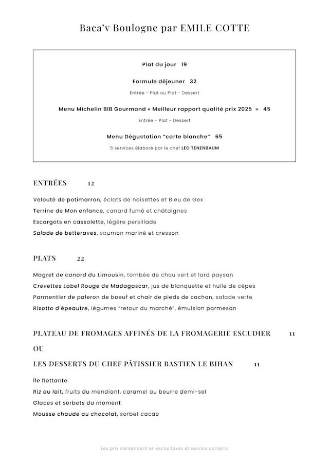 10/10Having dinner at Baca'v Boulogne was a superb experience. We ordered the 5 courses surprise option and it was amazingly delicious. 5 star food, service and atmosphere. Great value for money. Highly recommended. Thank you for the wonderful experience x