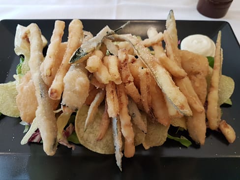9.5/10Excellent fish and (zucchini) chips. Welcome appetizer (carrot cream with crackers). Not far from the city center. Perfect choice for codfish lovers.