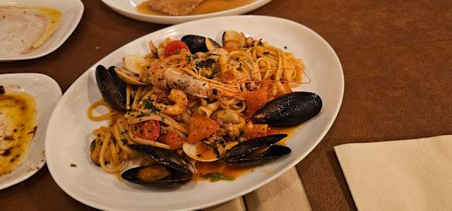 9/10+3We really enjoyed our meal and the service was excellent! We were visiting from Australia and didn't know what to expect, but were pleasantly surprised. The waiter very kindly gave us some olive oil and balsamic vinegar with the bread which made it a very tasty and enjoyable experience. The seafood pasta was very generous with seafood which we appreciated. The veal marsala, mixed cichetti and grilled vegetables were also very good. We also ordered roast potatoes which we didn't do justice to as we were too full to finish it.