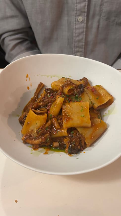 8/10We made reservation a few hours before, and got a table right at the entrance - it was not so great as it was a bit cold outside. Bread was excellent, as well as olive oil. Caserecce con ragu del día was delicious! Pasta with mashrooms was average. Sweets we did not try, but will ssome other time :)