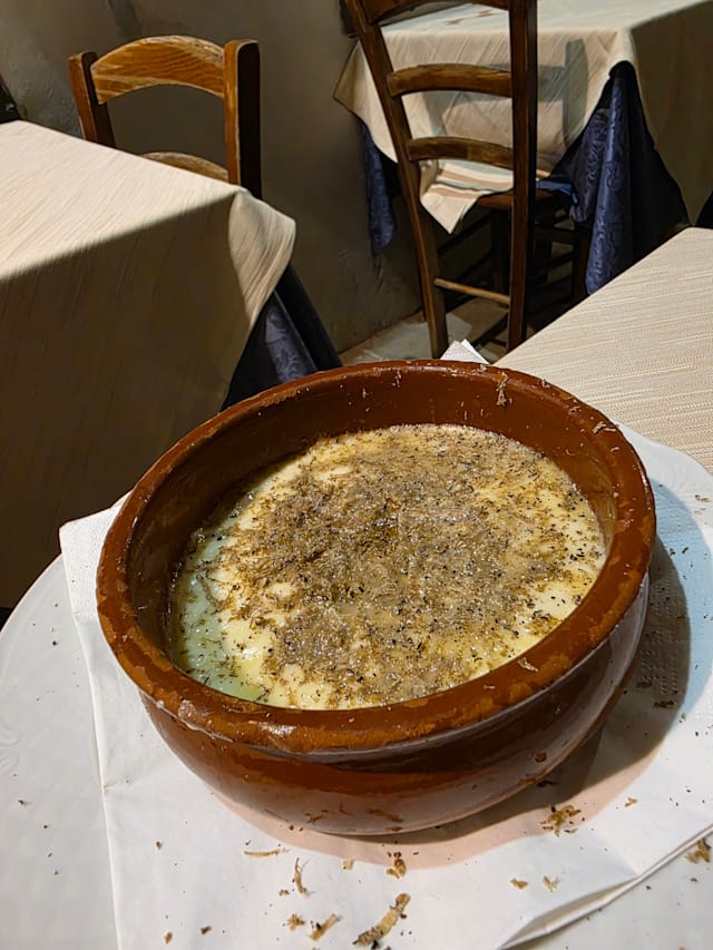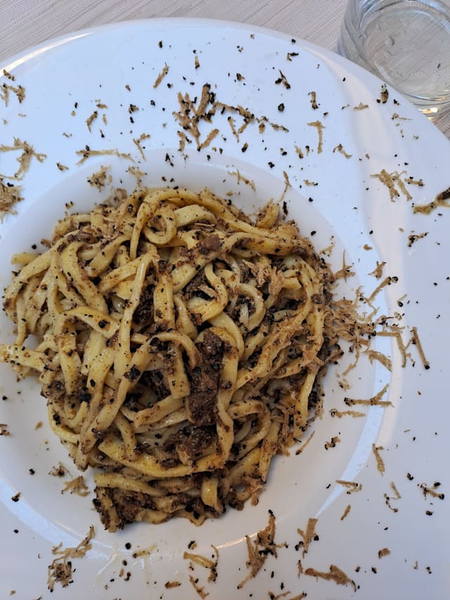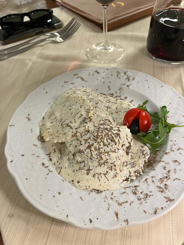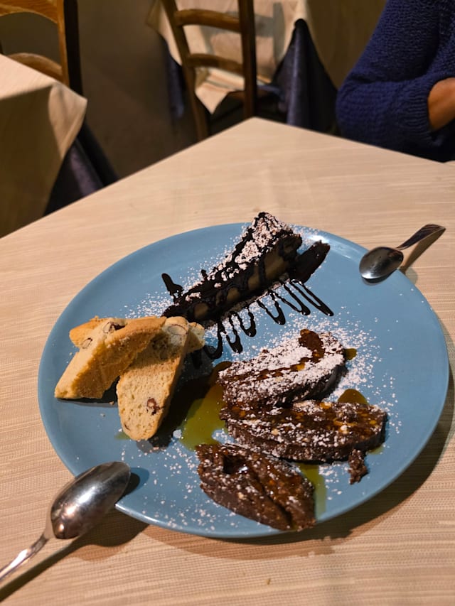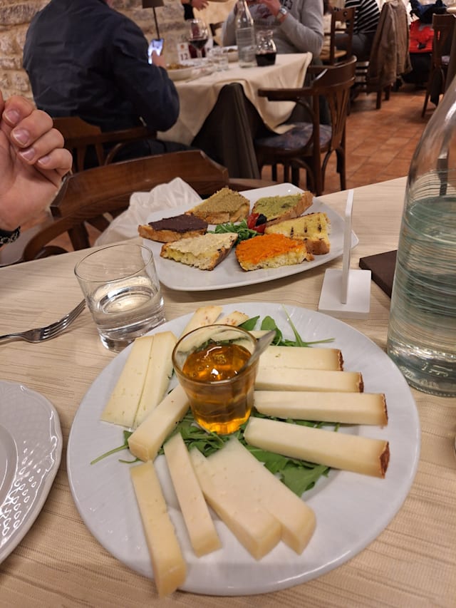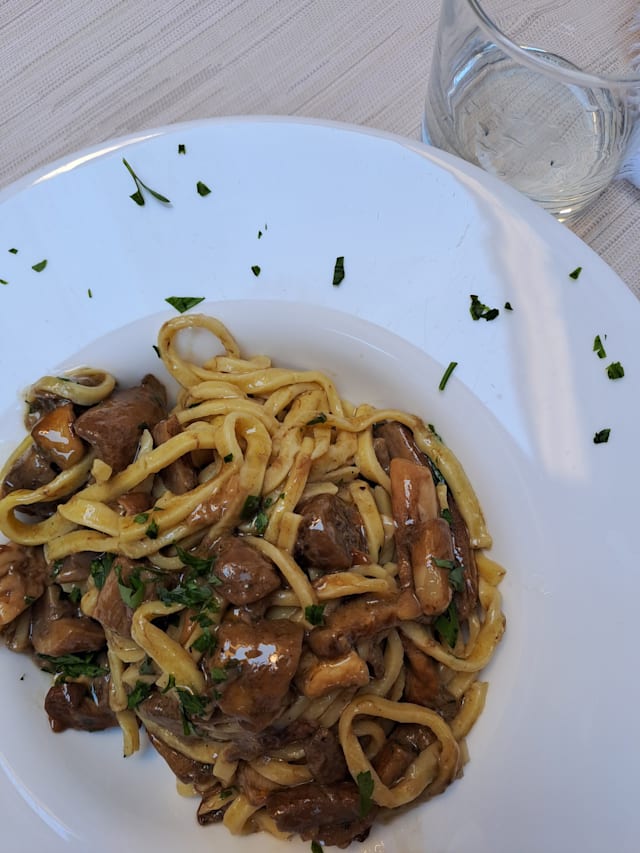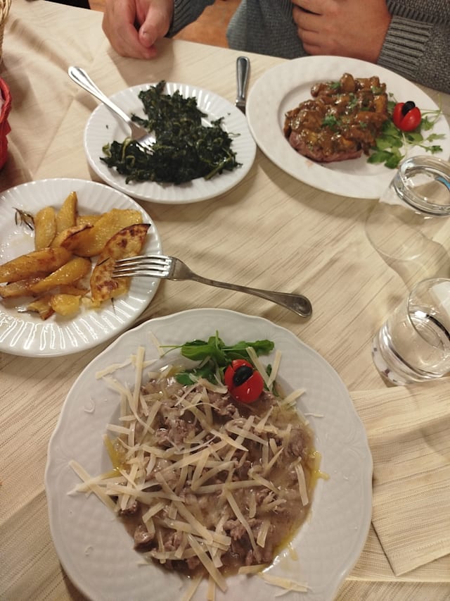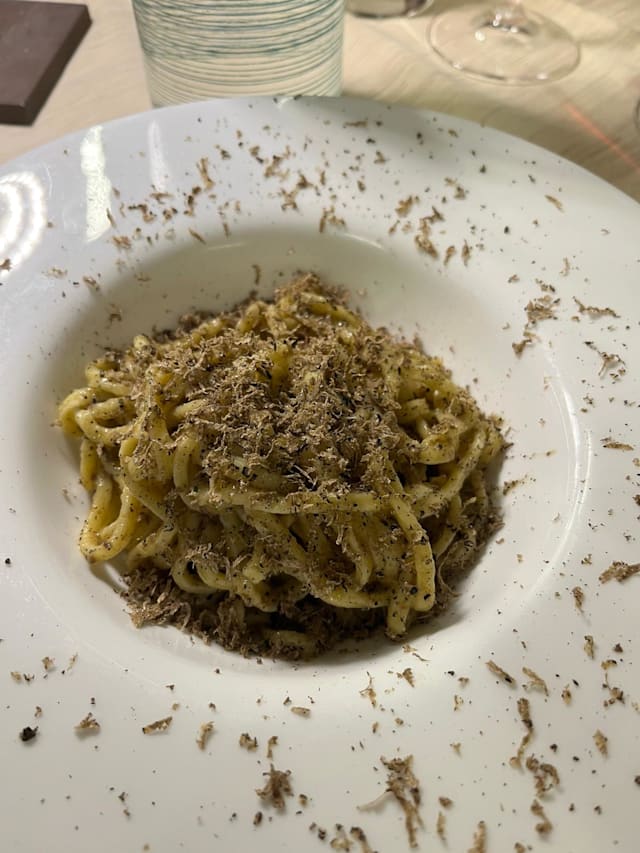 9/10Being older, we often share several courses instead of each ordering a full meal. Our waiter was very kind about splitting each course or providing share plates so we could try as many flavors as possible. The filetto di manzo blanketed with shaved black truffles was amazing, grilled rare as we like it, and the Montefalco Sagrantino one of the best red wines of memory. Although we had to ask for the discount provided by our booking with La Forchetta, they granted it readily and made the bill very reasonable.