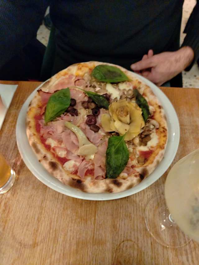 - Jambon blanc, artichauts, fior di latte, champignons, basilic, sauce tomate