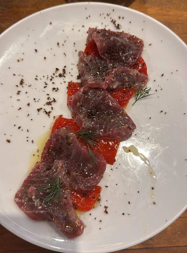 - Tagliata di fassona piemontese con scaglie di grana, rucola e aceto balsamico