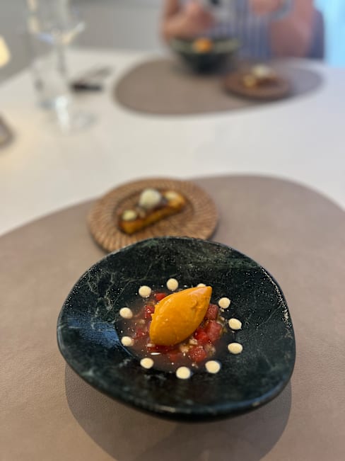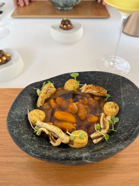 4.5/10Not tasty at all. The menu cost was 320€ and it consisted of numerous tiny dishes which were really disgusting. Sweet cinnamon pastry with fish broth? Really? And almost all dishes were served with different kinds or f mayonnaise. Or sauce aioli. Or something with very long name - but it was mayo. Very fatty. I had strong stomach pain after this food.