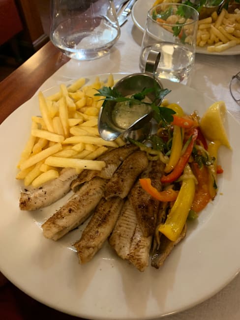 9.5/10What a warm welcome from Philippe which is rare thes days. He even apologized for only being able to speak a few words in English. The young server was pleasant with a warm smile. The filets des perches , Friday afternoon was great qualité / prix. The décor...well I am glad that haven't changed it even if it's been awhile. It's an institution. .