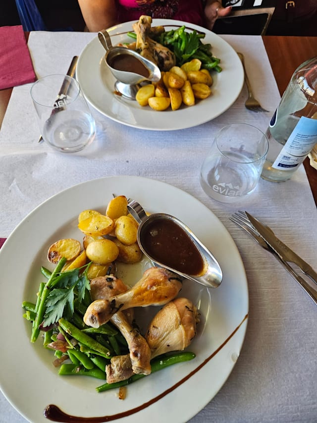 9.5/10Excellent food. Although they were not crowded, they put me in dark Siberia, and took a while to ask for my drink order. When they finally arrived, they asked for my entire order. Food prep was quick, however, and I had a very nice demi-poulet.