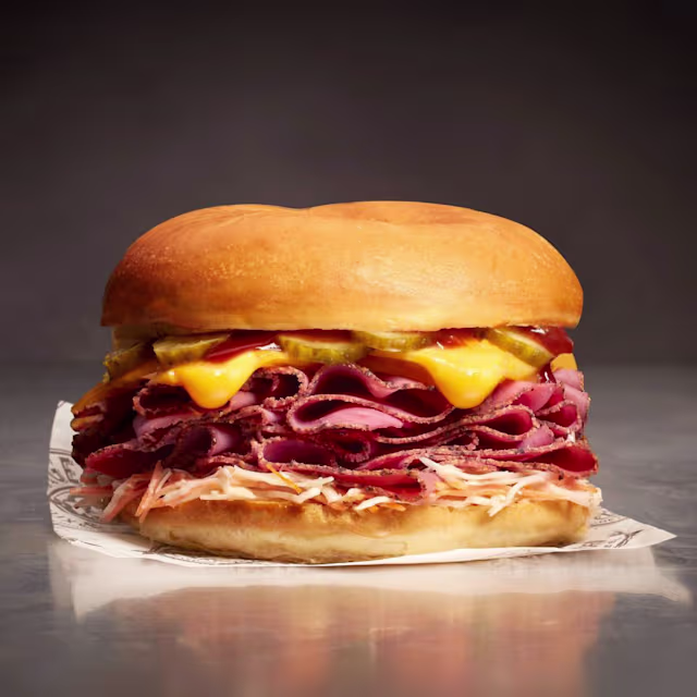 - Pastrami mariné aux 6 épices, cheddar, coleslaw, cornichons aigre-doux, sauce barbecue