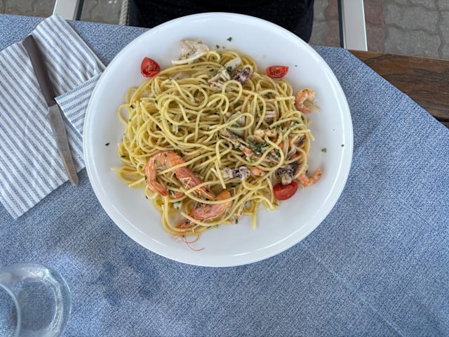 9.5/10Very friendly staff. Limited but delicious food at the equivalent of a beach cabana type place right on the sea.