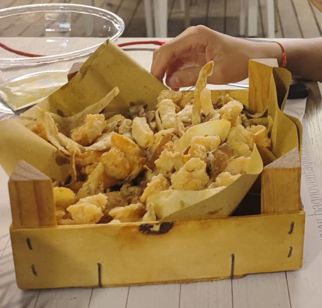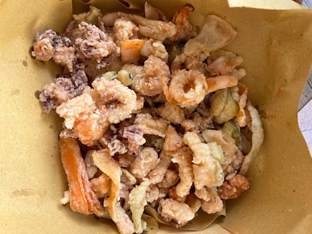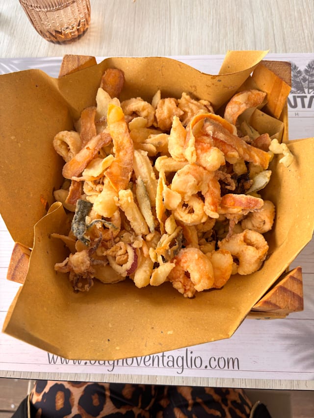 10/10An outstanding fritto misto! Would return in a flash to eat it again. Lovely casual, on the beach atmosphere.