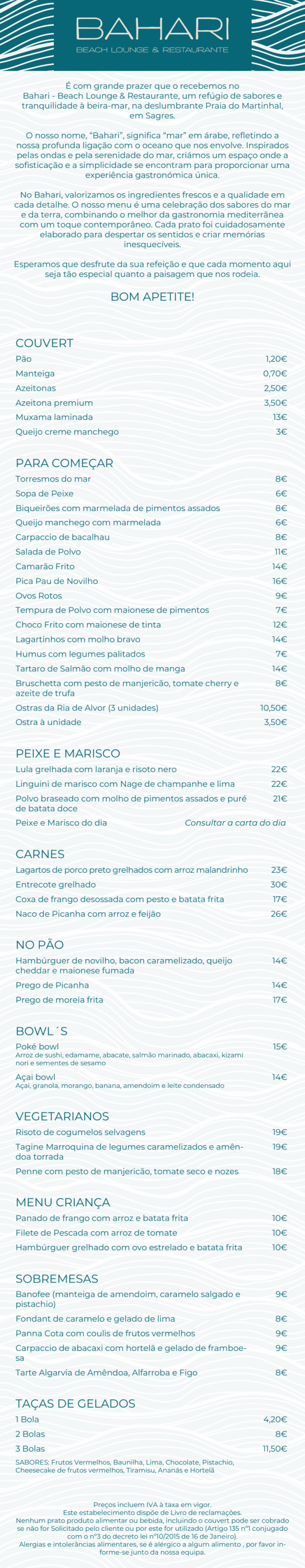10/10A spectacular setting right on the beach, with beautiful service, and delicious food! We had a great meal, and recommend it to anyone visiting Sagres!