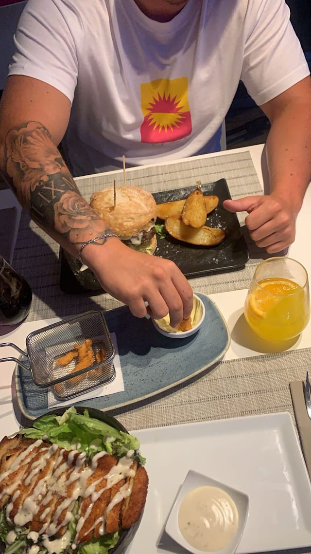 6/10Admittedly we were early for a Spanish evening meal, so no much athmoshere in the restaurant, it felt more like a beach barr red than a restaurant and the choice on the menu reinforced same feeling. Some of the photographs are pretty misleading, no white tablecloths here. Good okay as burgers go. Patatas Bravas delicious though