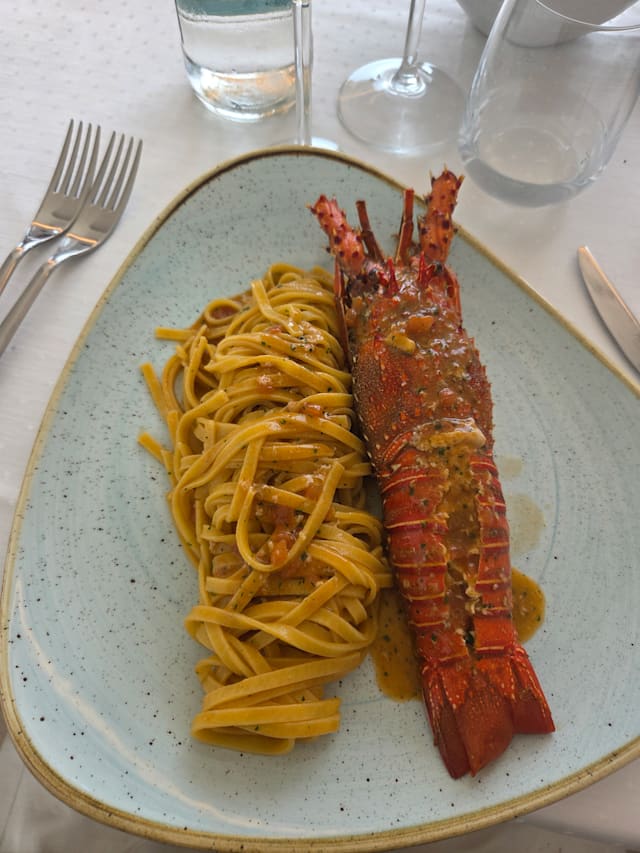 10/10Service and food are superb! Lovely dinner by the sea. Courses are generous. The carpaccio mix was adventurous with seafood we had not tasted before. The lobster and pasta was much more than expected. Half lobster and large amount of house made pasta. Oh, the seafood soup was divine! The ravioli are highly recommended, with the licorice subtle and a pleasant surprise. Only miss was the the shrimp cocktail. It is not what we expected and slightly odd. Shrimp would have been better uncovered because they’re so sweet on their own. Oh well, it did not take away from the overall experience. Desserts are world-class. The service is very on-point. We were attended to at the right time and right amount. Everyone pleasant and accommodating. Ambiance is a wonderful experience by the sea. It was very brightly lit inside (might want to dim it a bit) but fortunately we were seated outside. We were even blessed by lovely weather. It was a memorable experience!