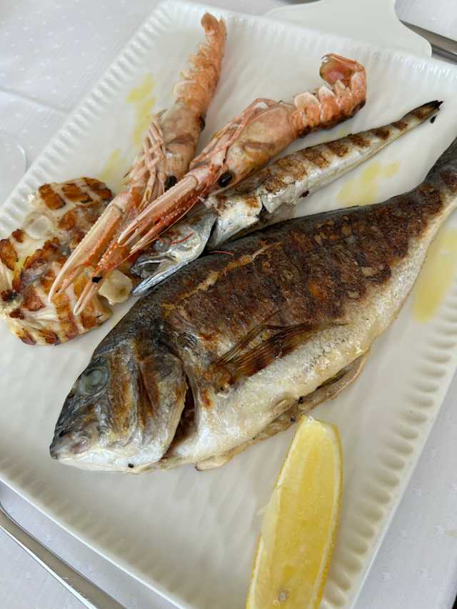 Grigliata di pesce in base al pescato del giorno il prezzo varia a seconda della tipologia e grandezza.