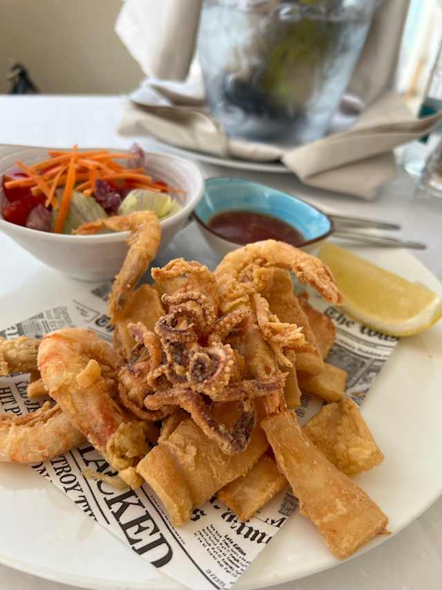 Frittura di calamari e gamberi, maionese all’aglio nero