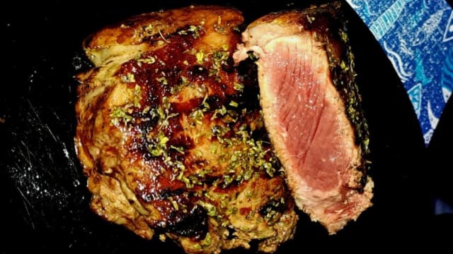 Filetto di manzo 180 gr., pepe verde in grani, farina, burro, panna. Sfumato con brandy.