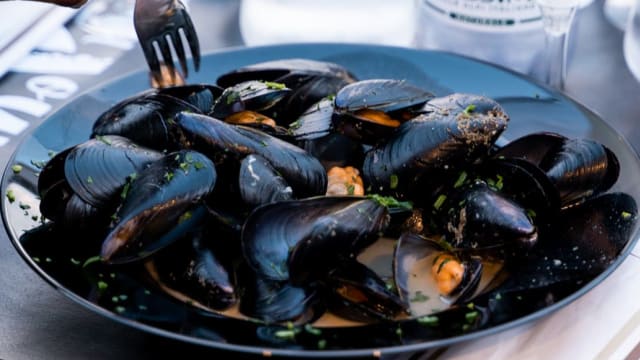 Pasta di grano duro, cozze, vino bianco, olio evo, pepe nero, aglio, prezzemolo, peperoncino