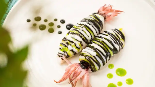 - Polpo croccante, cicorietta ripassata aglio olio, cipolla in agrodolce e citronette al lime