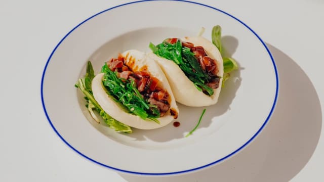 Bao ripieno con tartare di tonno con zucchine alla scapece e la sua crema