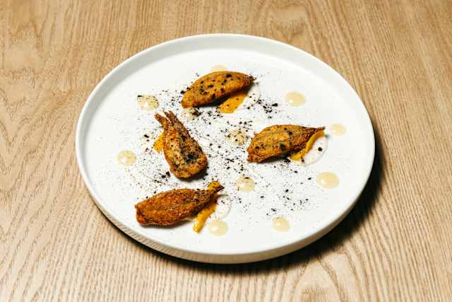 - Alici ripiene, chutney di stagione, limone alla brace, fonduta di provola di bufala
