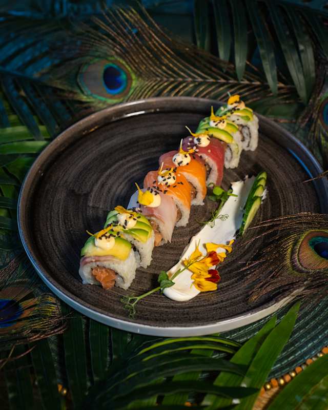 - Involtini di salmone, mango, salsa ponzu