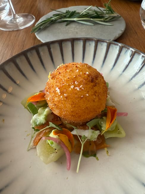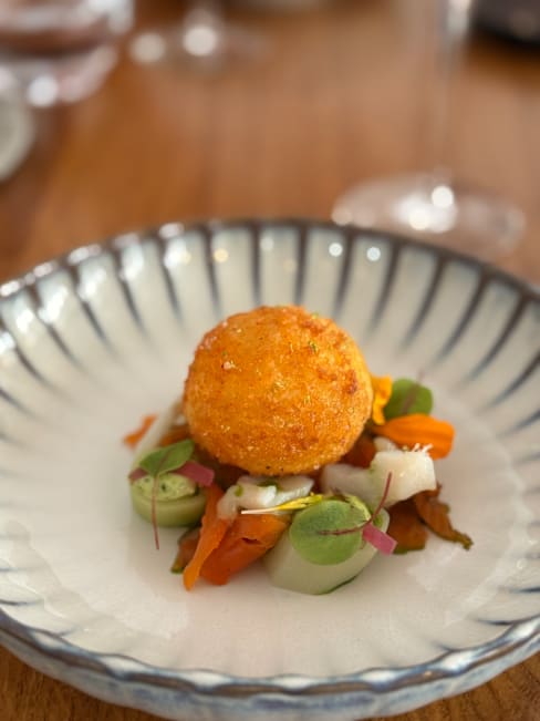 6/10Very underwhelming after the expectations we had. No gluten free options for bread. And multiple repeat flavors. The cheese course had 2 goat cheese - did not even feel like they were trying to make an effort. There was a citrus/ sour flavor that was nice but too prevalent across multiple dishes.