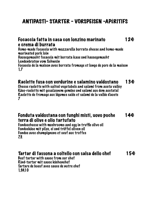 9.5/10The evening was a really nice experience, which started with snow mobile ride to the restaurant from Cervinia village. The restaurant was cosy and food (risotto, gnocchi and meet dishes) was really good. We were especially happy for innovatines to make food without glutein, milk, egg and nuts. When our allergic daughter enjoys, we all are enjoying. Thanks a lot for caring.