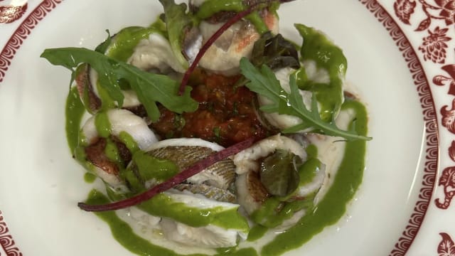 8/10Fabulous setting with super friendly and attentive service. The wine list is amazing it is vast and we needed some help. The recommendation was great and very reasonable. So far brilliant but the food let things down a bit. It was okay but nowhere near the level of everything else. The white asparagus was tough, the pork very rare and serve with a chunk of liver cooked to a leather like finish. The steamed fish was a dish primarily of langostines and vastly over priced at €50! So a lovely restaurant with great presence and front of house that really needs to put in some work where it counts on its food offering