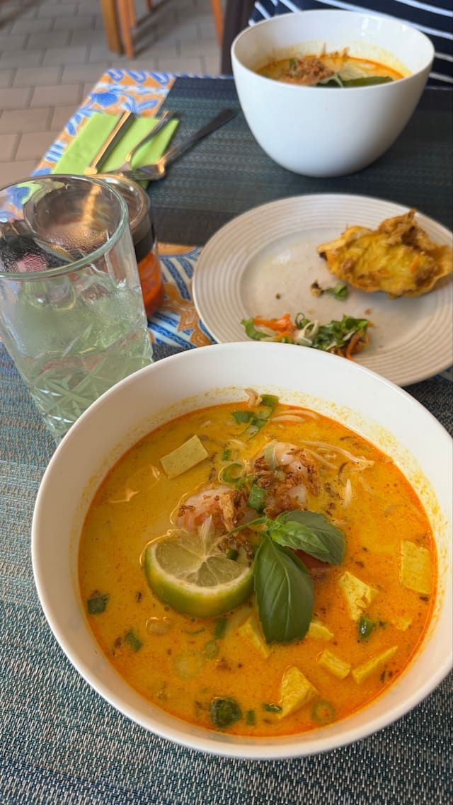 7.5/10The restaurant is tucked away at a corner and was recommended hence ventured there. The laksa soup was ok not spicy at all and flavors were ok with lot of vermicelli but li,iced chicken and prawns. The lamb curry was much better. The service was excellent but the food needs to have more spice and more flavor to appeal to a wider audience. The big money plant on the corner has the leaves worn out chi does not add to the ambience. More flavor more spice will make this a go to restaurant. It’s not cheap so they need to step up .